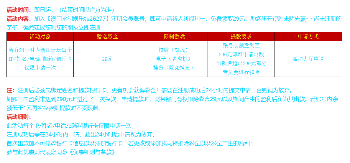 活动详情:新用户注册绑定信息去优惠大厅自助申请29彩金查IP有点严,具体看下图自测切记勿充值。
