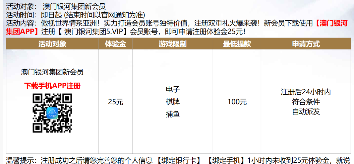 活动详情:注册成功绑定信息自动送25彩金