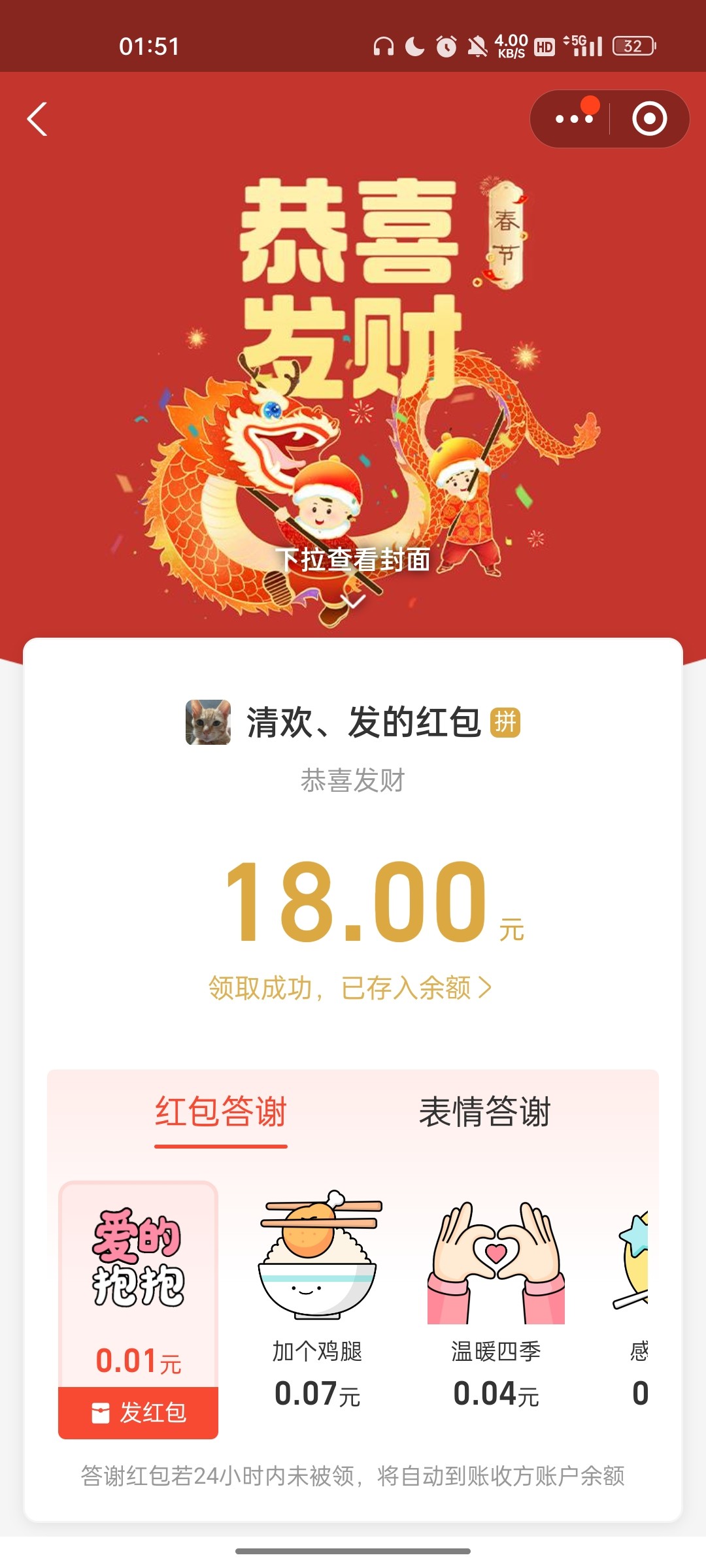 春节福利抽到我了 美滋滋