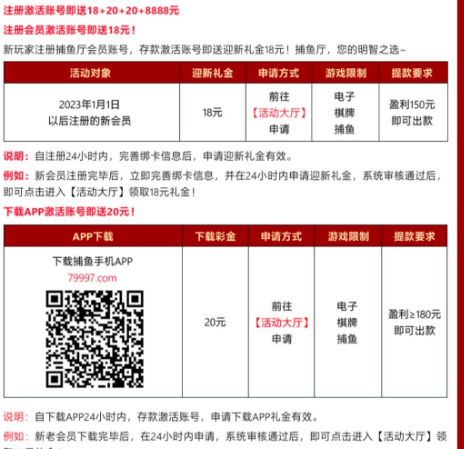 活动详情:新用户注册绑卡优惠大厅自助申请18彩金下载APP还可以申请20彩金具体限制看活动